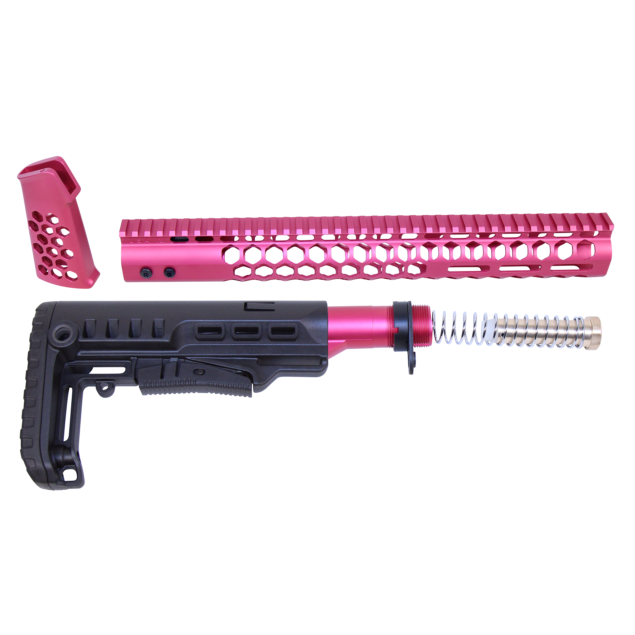 AR-15 “Honeycomb” Series Complete Furniture Set (Gen 2) (Anodized Pink)